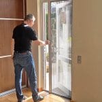 Ievieto plisē sieta izvelkamo bloku augšējā un apakšējā vadulā. Tad pusē, no kuras siets tiks vērts, nofiksē to sānu vadulā stingri piespiežot.