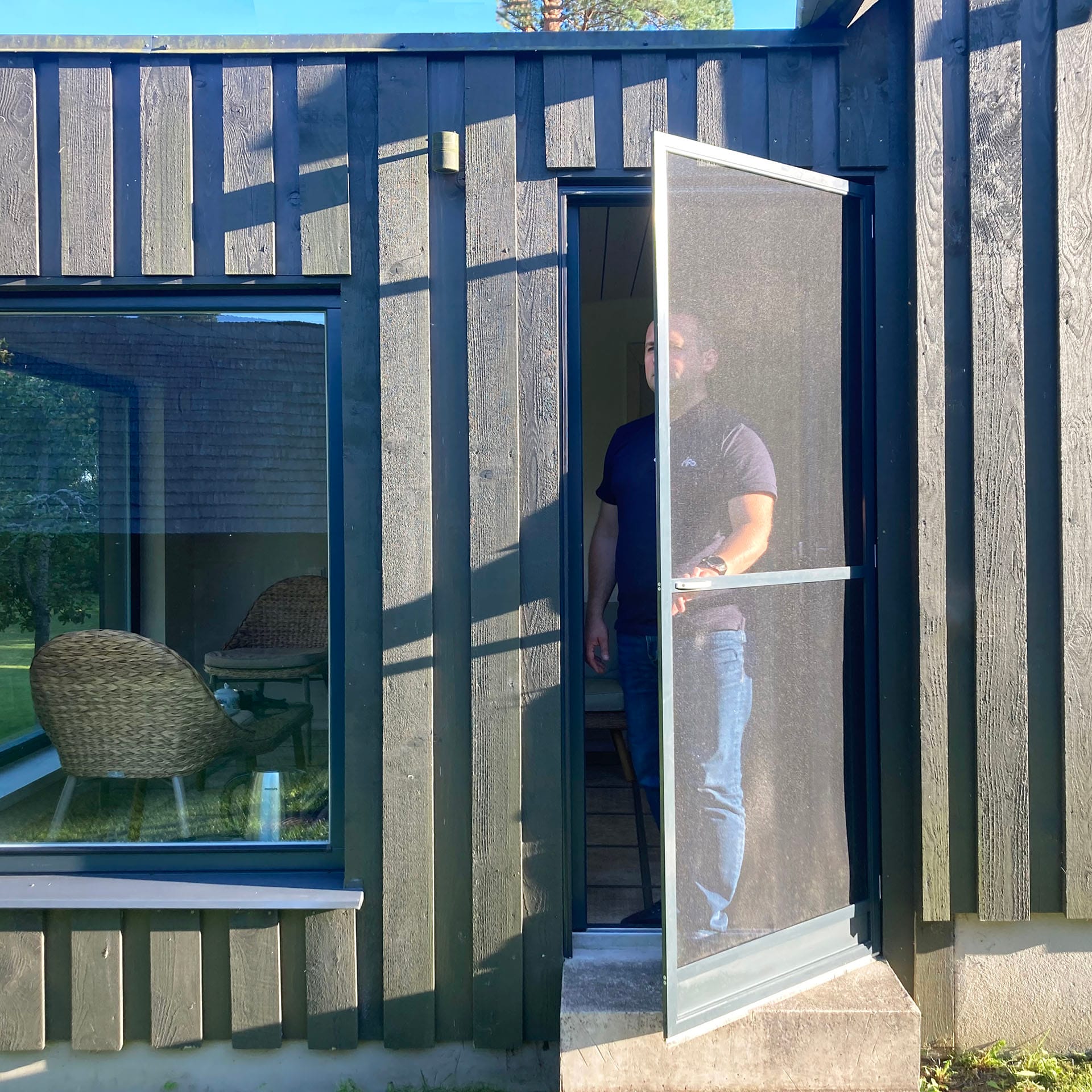 The insect screen door is intended for swing doors. The best fit and practical use is to mount this screen on doors leading to the terrace, balcony or garden. Insect screen doors are designed for frequent use where you regularly go in and out of the house. If you have a pet, you can consider a pet screen on the lower part of the insect screen door, which is made of extra durable material so that the pet can better see the screen and it can better resist scratching. But even a pet screen cannot withstand high pressures from large pets and can come off.